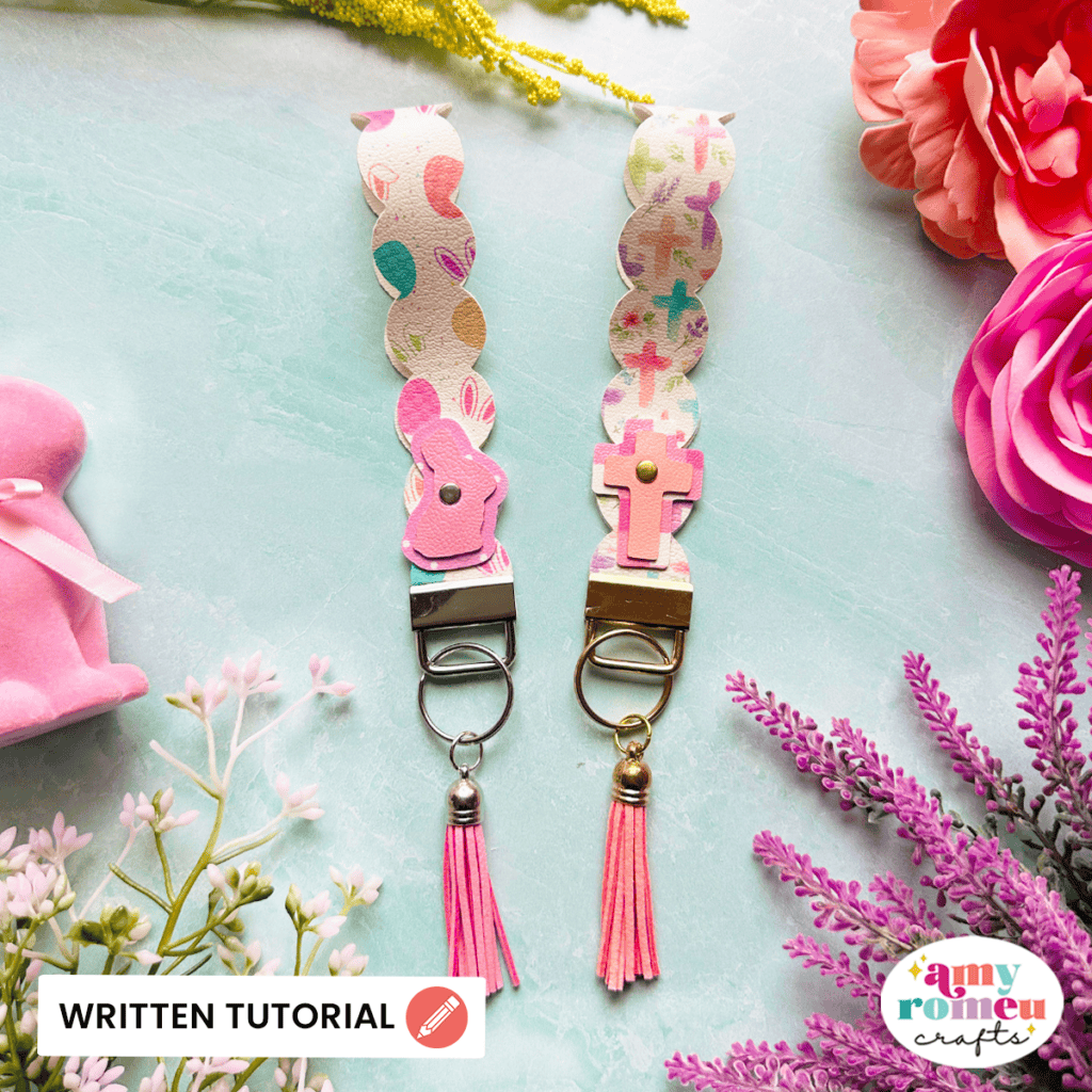 These sweet Easter Faux Leather Wristlets made with a Cricut are the perfect way to keep your keys handy during the Spring season!