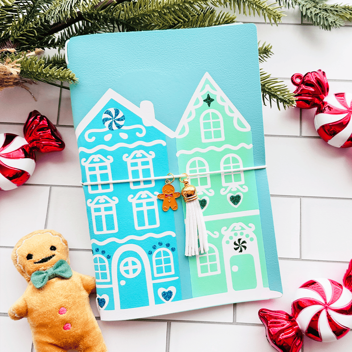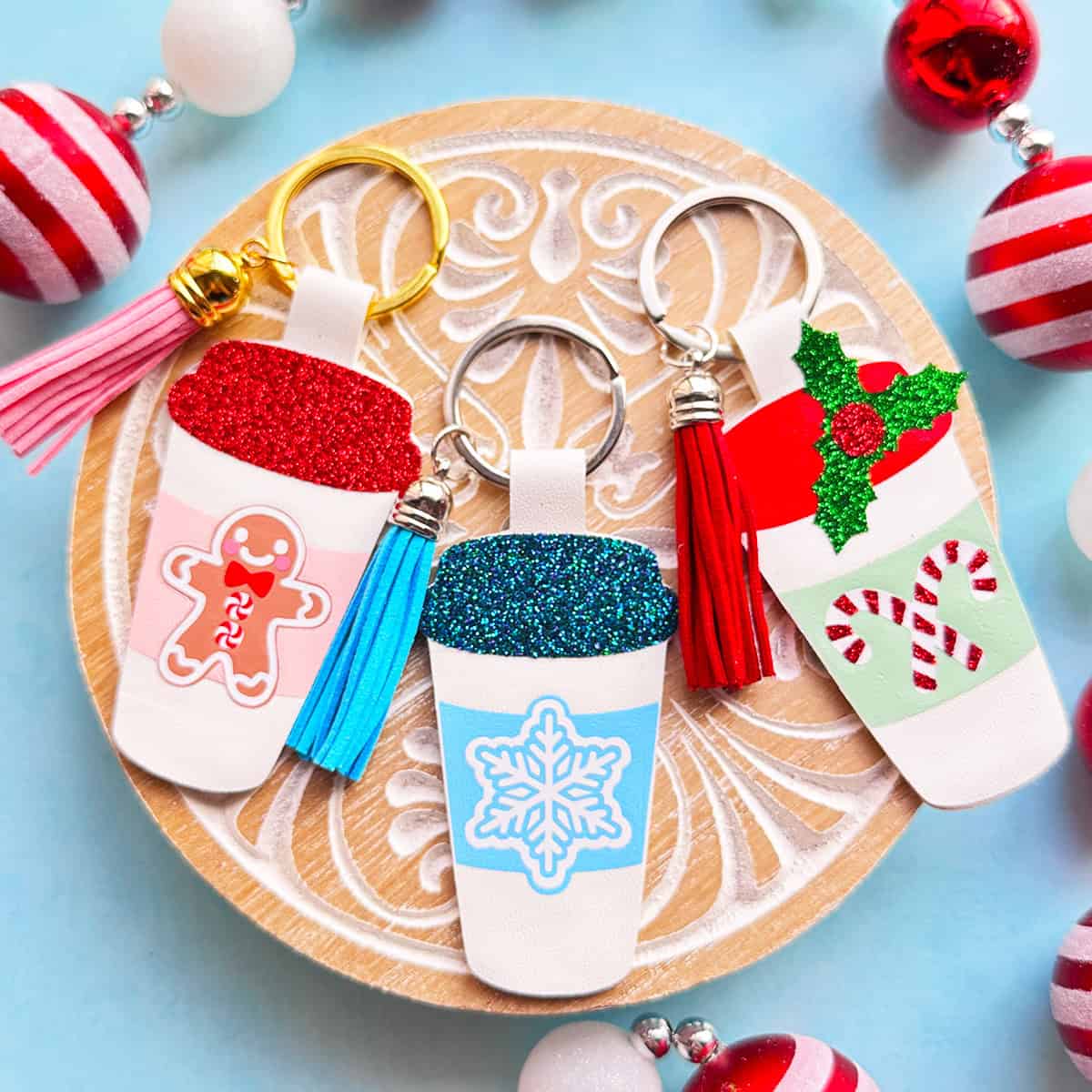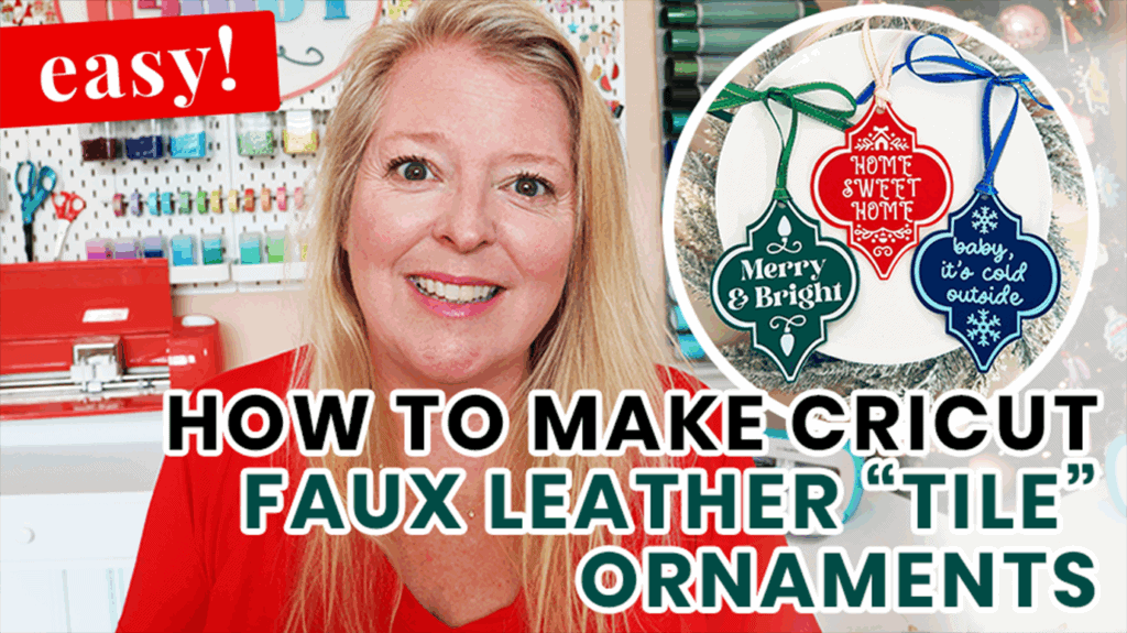 These Arabesque “Tile” Ornaments bring that classic holiday craft look to life in cozy faux leather! You’ll cut the faux leather and heat transfer vinyl with a Cricut and finish each one with a pretty ribbon for hanging.