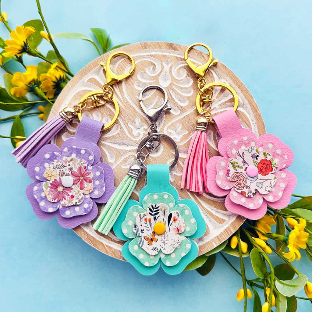 In this tutorial I’ll be showing you how to make these Layered Flamingo & Turtle Keychains using faux leather and Cricut cutting machine. Summer is a great time for fun mixing and matching of prints and patterns, and this project is infused with that casual, summery patchwork style.