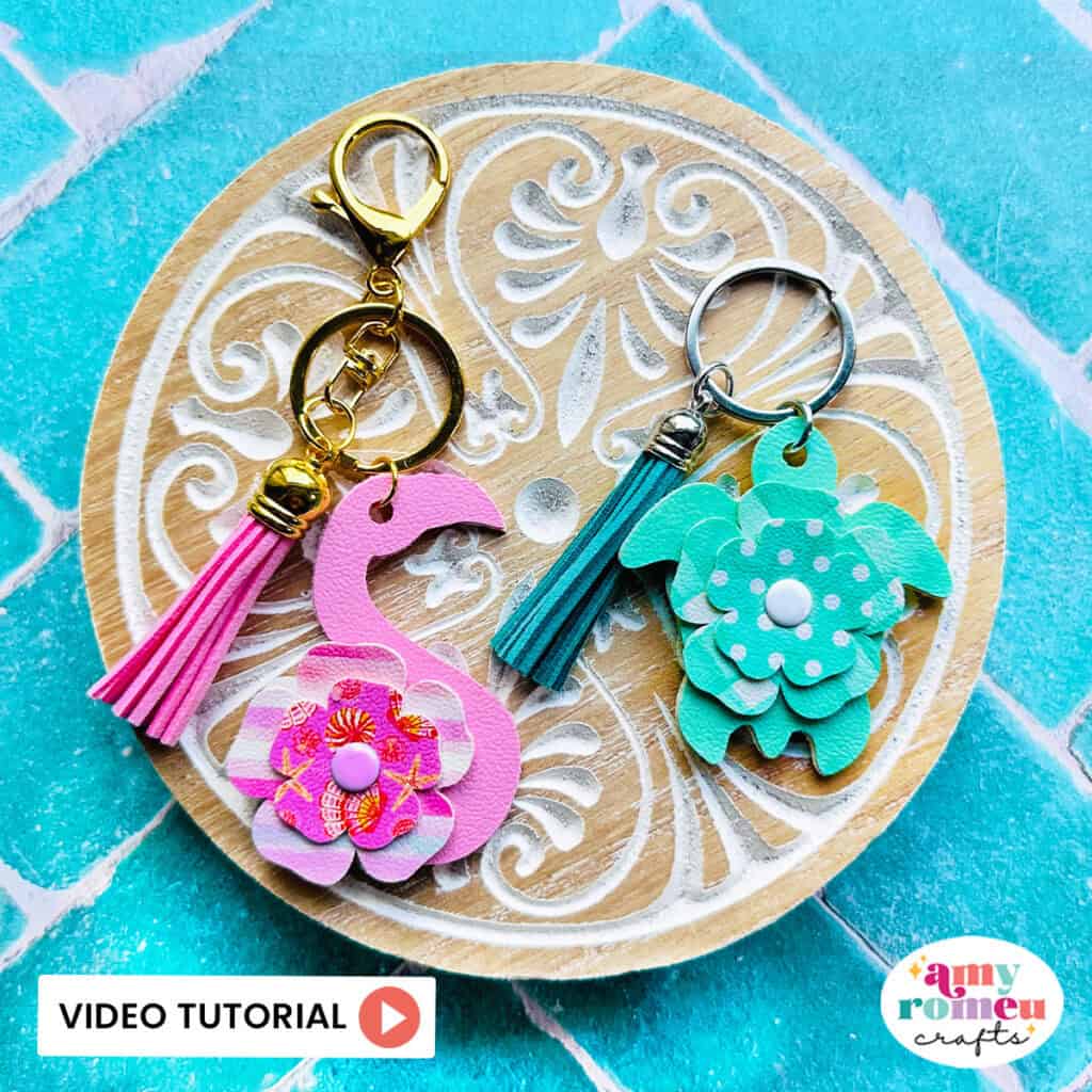 How to make Cricut Faux Leather Flamingo & Turtle Keychains