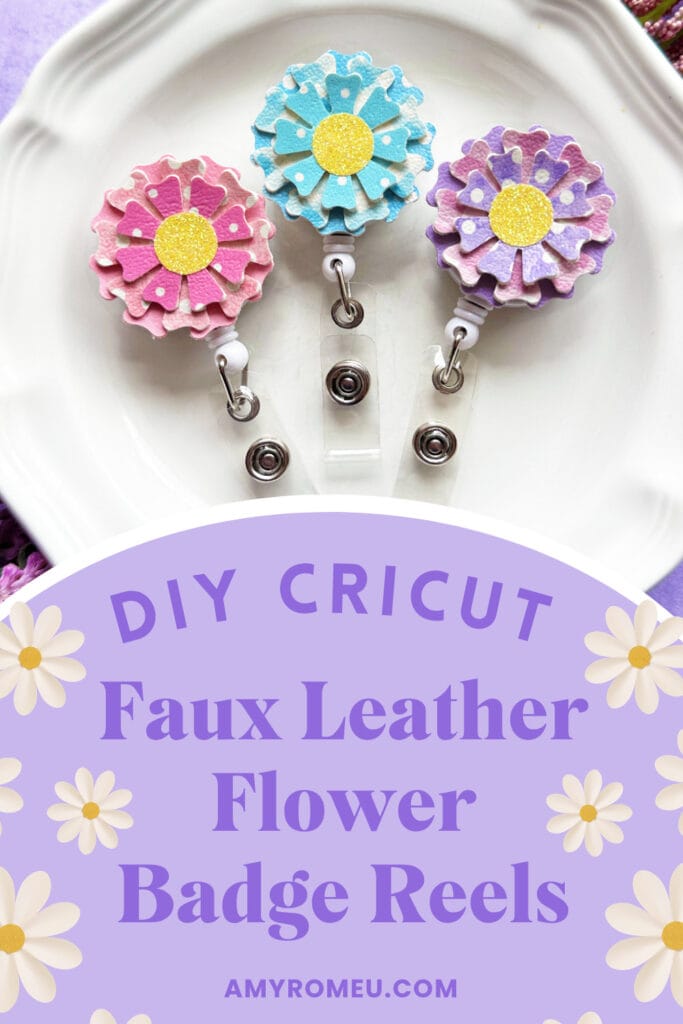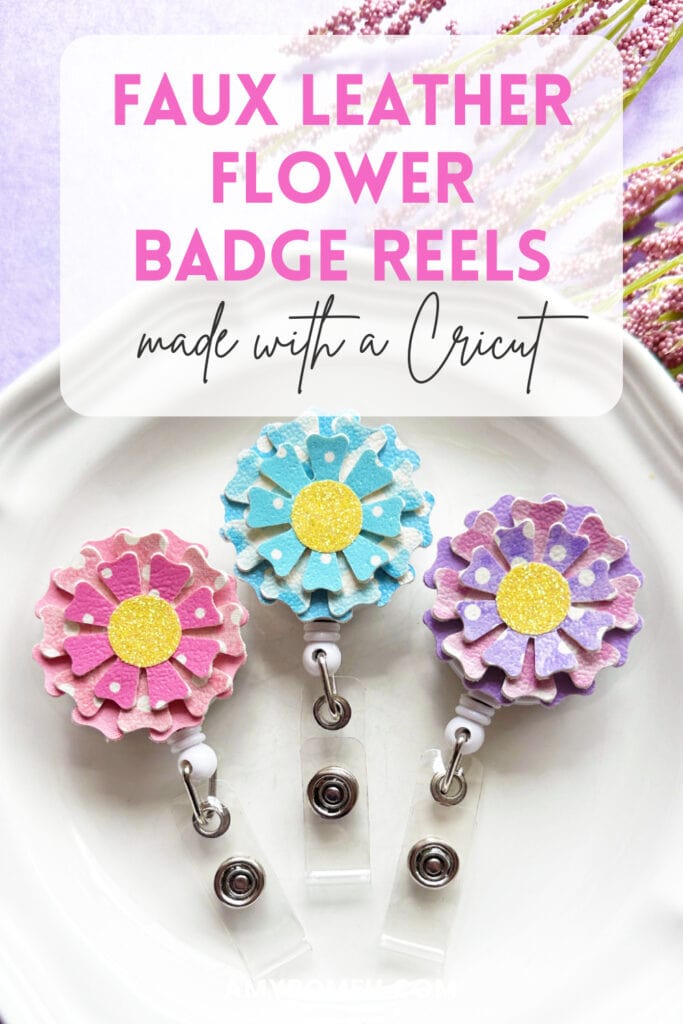Learn how to make this Flower Badge Reel using faux leather and your Cricut!