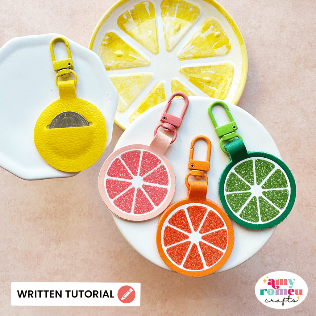 Learn how to make this Fruit Slice Quarter Keeper using faux leather, heat transfer vinyl, and your Cricut!