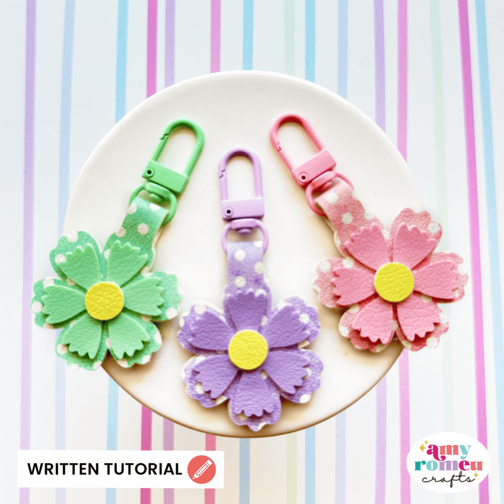 Learn how to make this Mini Flower Keychain using faux leather and your Cricut!