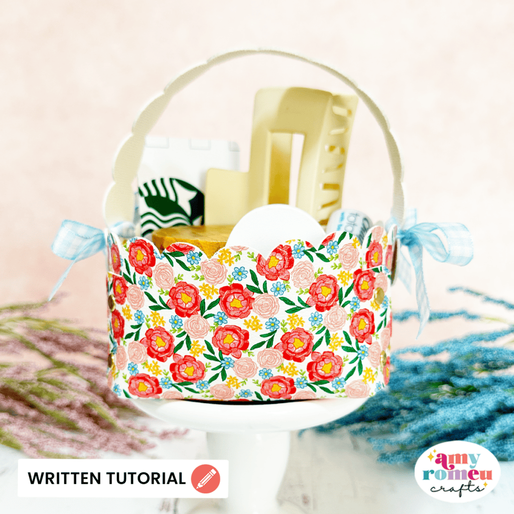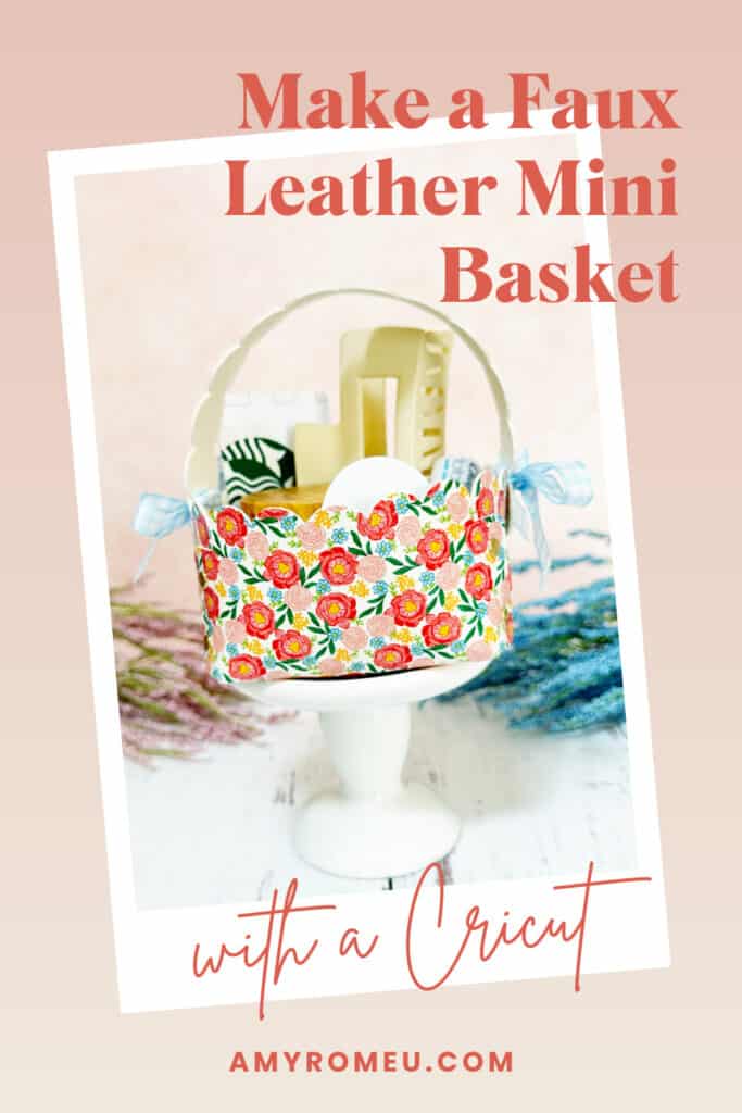 This sweet Faux Leather Mini Basket made with a Cricut is so fun and easy to make! Fill the mini basket with a gift card, lip balm, and other small skin care products to make the perfect little Spring gift – or fill it with candy for a mini Easter basket!