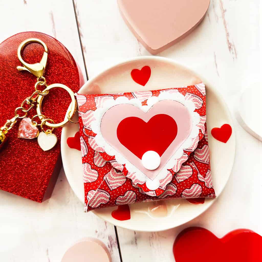 - Any faux leather you choose. I used this Red Valentine’s Heart Cake print